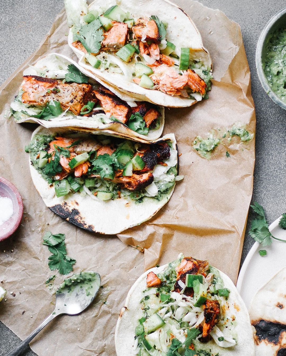 While white fish generally comes to mind when you think of fish tacos, salmon can certainly hold its own. However, the true winner in this recipe is the juicy citrus salsa, which combines oranges, avocados, cilantro and jalapeño to make this taco an instant favorite. The juicy sweetness of the citrus goes perfectly with the spicy run on the salmon, and with it all rolled up in a corn tortilla, you truly can’t lose.