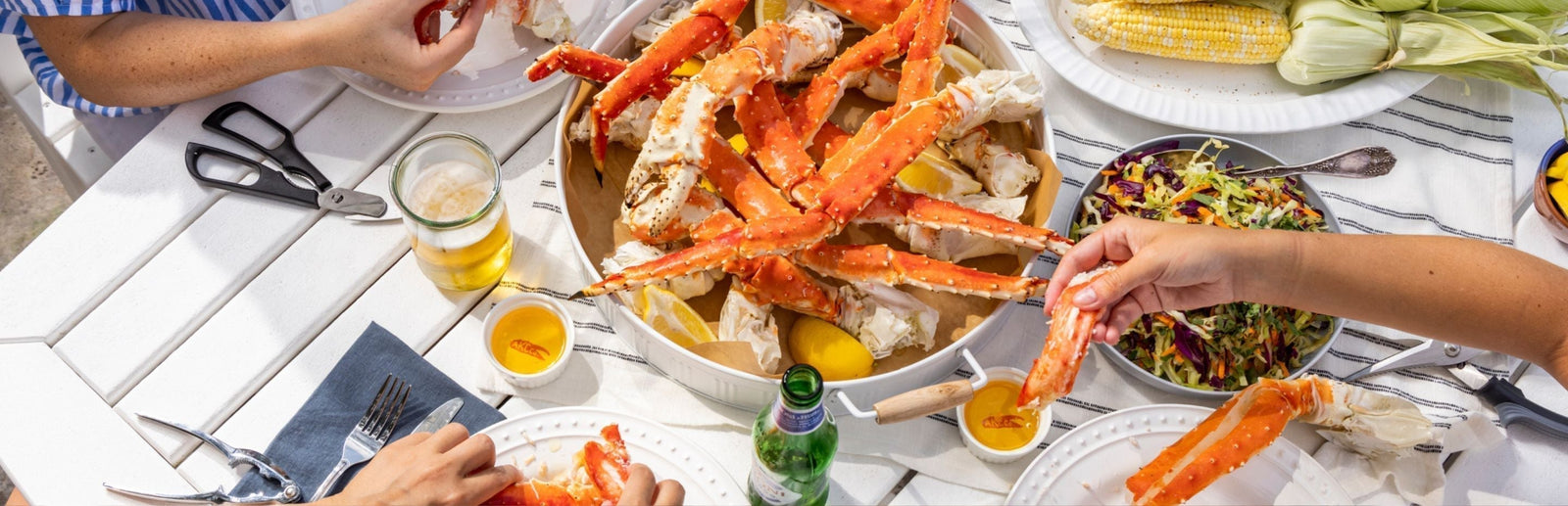 Many folks ask why our king crab is pre-cooked. Here’s the simple answer: our method preserves the freshness of each catch — so fresh you’ll feel like you’re on a dock in Alaska enjoying the best of a just-off-the-boat king crab dinner.